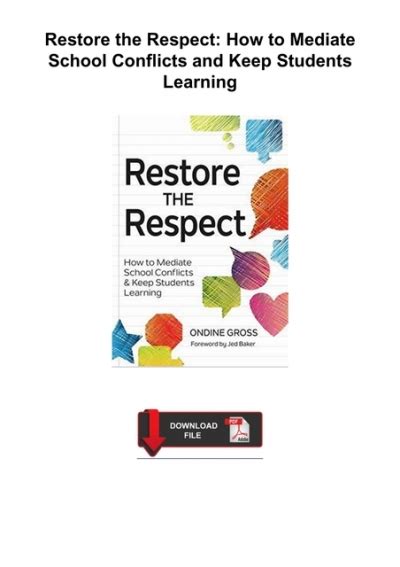 Read Online Restore the Respect How to Mediate School Conflicts and Keep Students Learning Epub By Click Button. Restore the Respect How to Mediate School Conflicts and Keep Students Learning it’s easy to recommend a new book category such as Novel, journal, comic, magazin, ect. You see it and you just know that the designer is also an author and understands the challenges involved with having a good book. You can easy klick for detailing book and you can read it online, even you can download it
